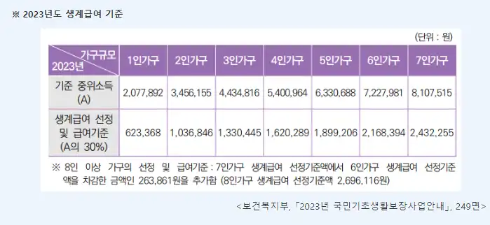 일 경우, 정부에서 제공하는 금전적 지원입니다. 이 금액은 가구원의 생계를 유지하고, 기본적인 생활을 영위할 수 있도록