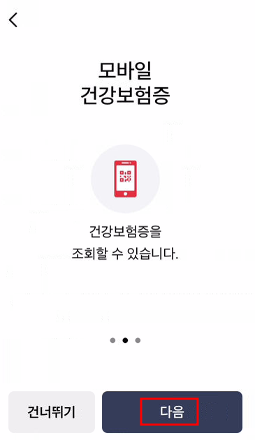 그다음 모바일 건강보험증에 대한 설명이 나오는데 다음 버튼을 계속 클릭하신 다음 마지막에 확인 버튼을 클릭해 주시면 됩니다.