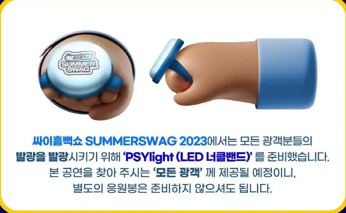 올해는 티켓예매후 참석하면 모든 분들에게 LED 너클밴드를 제공된다고 합니다. 별도의 응원봉은 준비해가지 않으셔도 됩니 편리합니다.