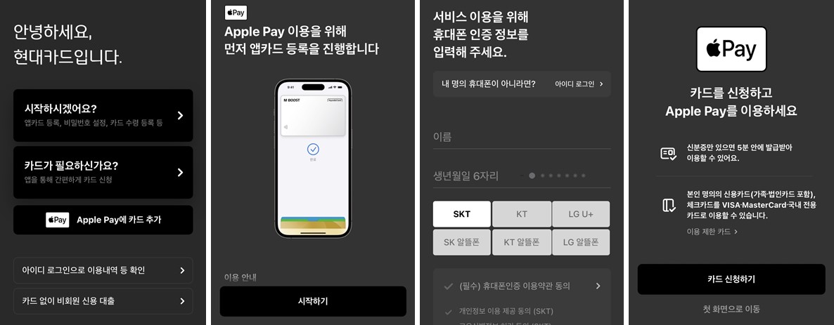 현대카드 앱 다운로드하시고 순서대로 인증 진행하시면 됩니다.