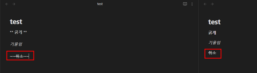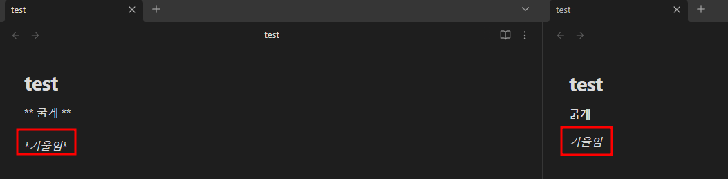 먼저 ** 굵게 **를 사용결과입니다.
