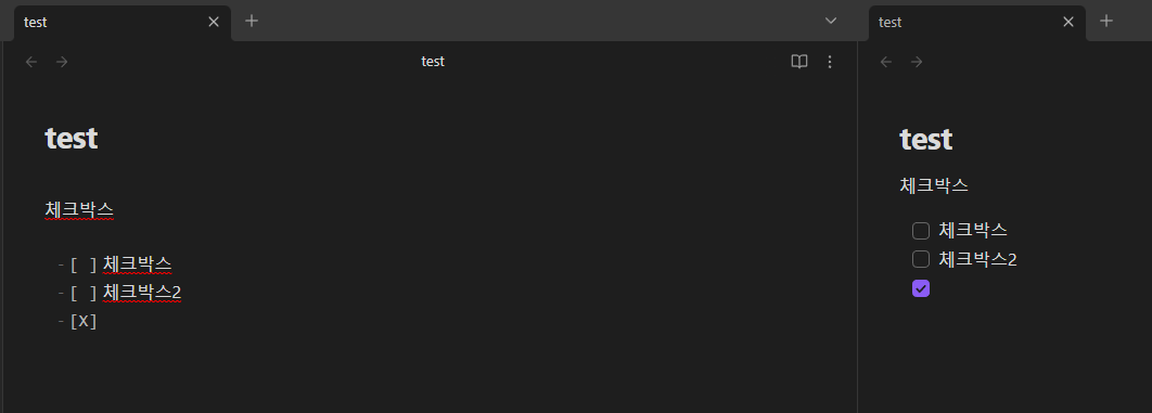 체크 박스에 표시도 할 수 있는데 [] 내부에 X를 입력해 주면 체크 표시가 활성화된 것을 확인하실 수 있습니다.