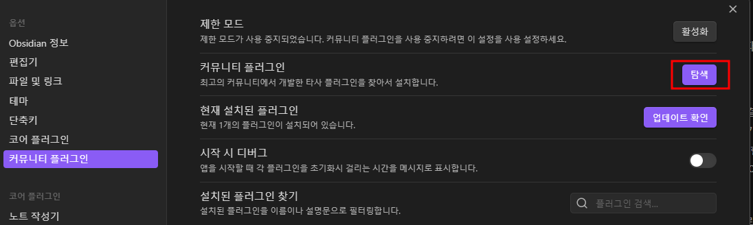 옵시디언 플러그인 설치