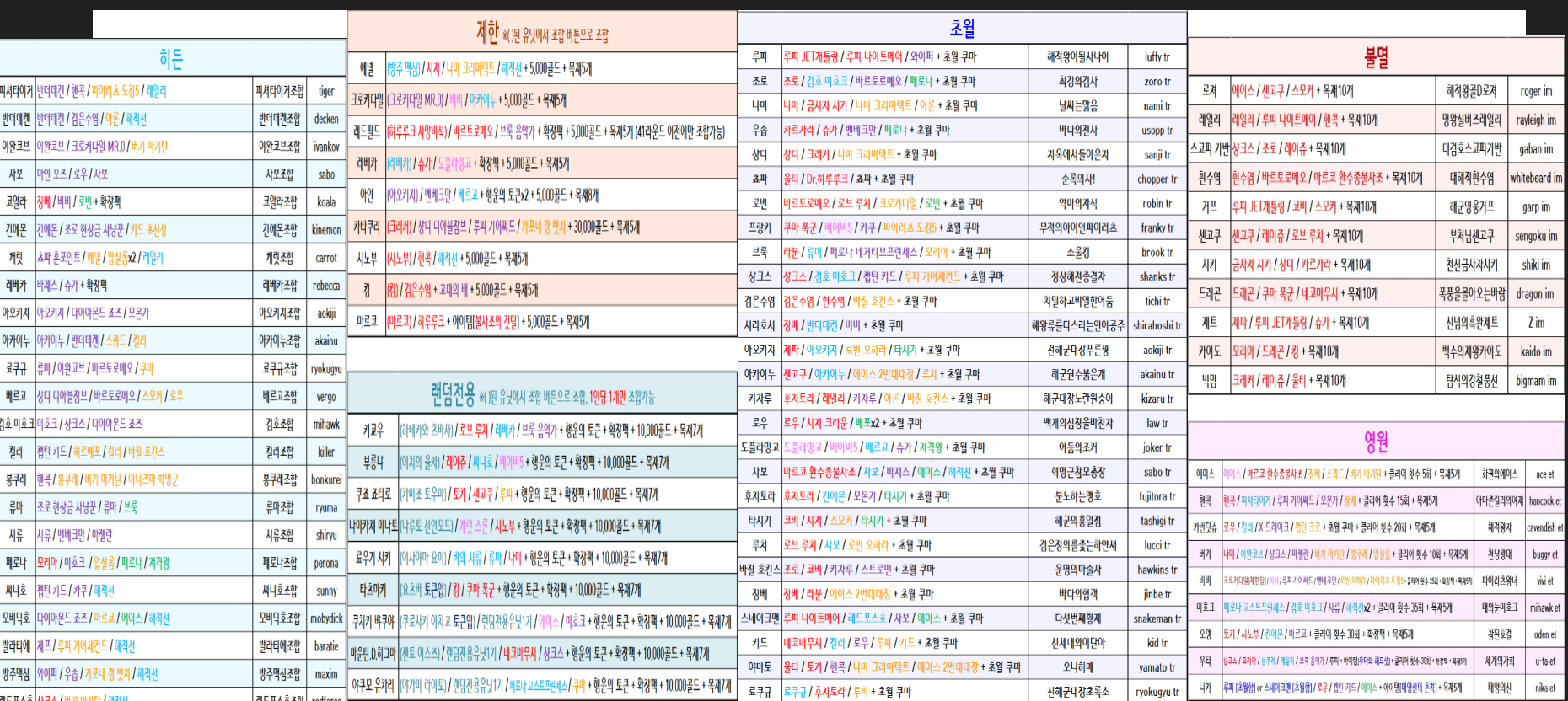 먼저 더블모니터를 사용하시는 분들을 위해서 조합표를 한 번에 볼 수 있도록 모든 조합표를 하나의 이미지 파일로 만들어 봤습니다.