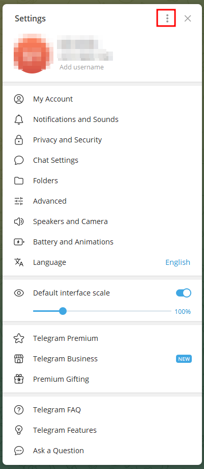 좌측 상단 아이콘을 클릭하시면 여러 텔레그램 기능들이 나오는데 그중 Settings을 클릭해 주세요.