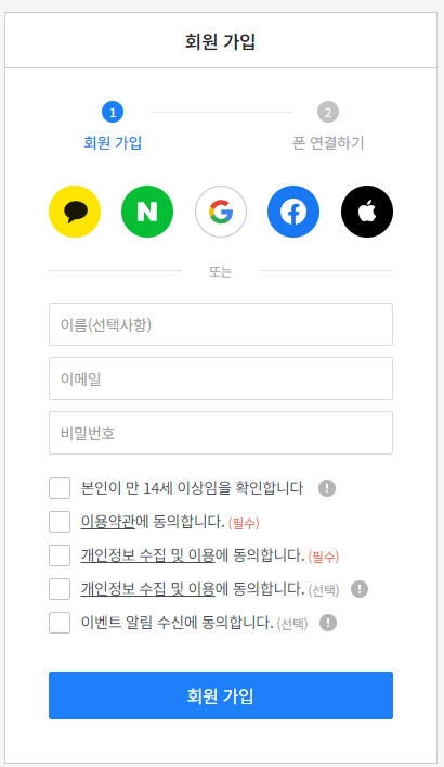 그렇다면 회원가입을 진행하시면 되는데 회원가입은 카카오, 네이버, 구글 등 간편 로그인으로 진행하실 수 있습니다. 저 같은 경우는 구글을 이용해 진행해 보겠습니다.
