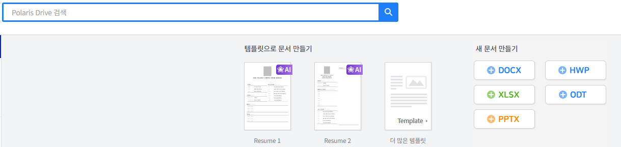새 문서 만들기를 통해서 문서를 하나 만든 뒤 처음처럼 My Polaris Drive에 저장하기를 클릭하시면 정상적으로 드라이브에 문서가 추가된 것이 확인됩니다.