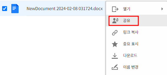 이제 추가한 문서를 우클릭해서 공유 버튼을 클릭해 줍니다.