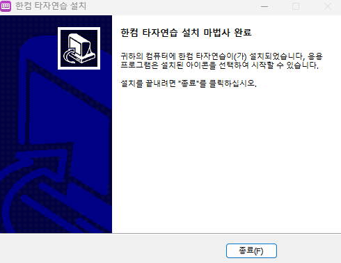 설치가 완료되면 종료버튼을 누르시고 바탕화면에 들어가서 한컴 타자연습 아이콘이 생긴 것을 볼 수 있습니다. 이제 이 아이콘으로 한컴 타자연습을 하실 수 있습니다.