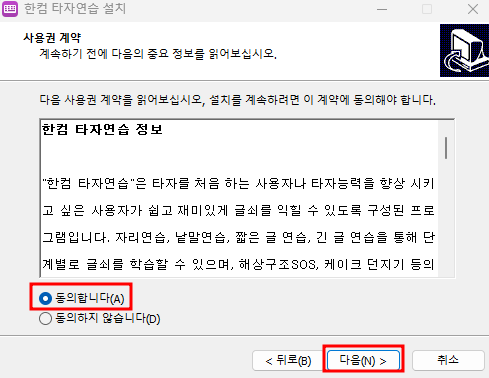 그다음 사용권 계약에 동의를 체크해 주시고 다음을 눌러서 설치를 마저 진행해 주시면 됩니다.