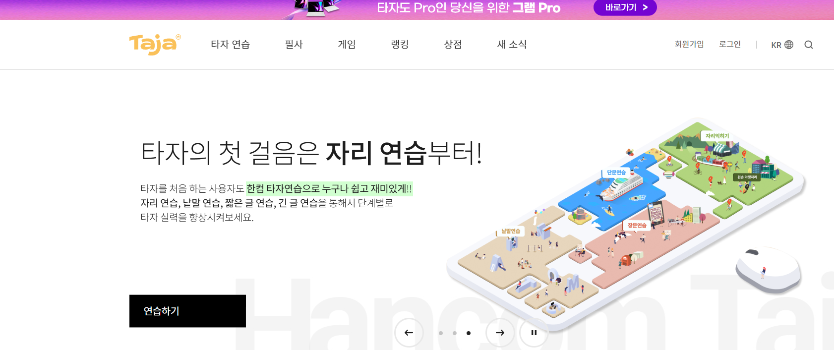 웹으로 접속하시면 타자 연습, 필사 게임 랭킹 상점 새 소식등 이용하실 수 있습니다. 타자 연습은 로그인 없이도 사용할 수 있고 게임 같은 경우에는 로그인을 해야 합니다.