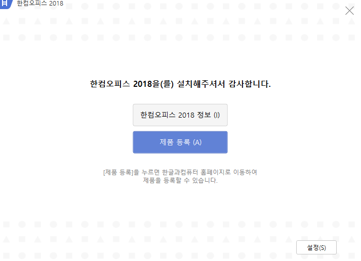 설치를 완료하고 한글 2018을 실행하면 성공적으로 실행이 되는 것을 확인하실 수 있습니다.