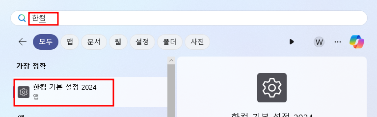 한글 2024 버전은 2024.6.1일에 추가된 내용입니다. 기본적으로 2022 버전과 동일하게 업데이트를 종료할 수 있습니다. 윈도 시작키를 누르고 한컴을 입력하시면 한컴 기본 설정 2024를 확인할 수 있는데 클릭해 주세요.