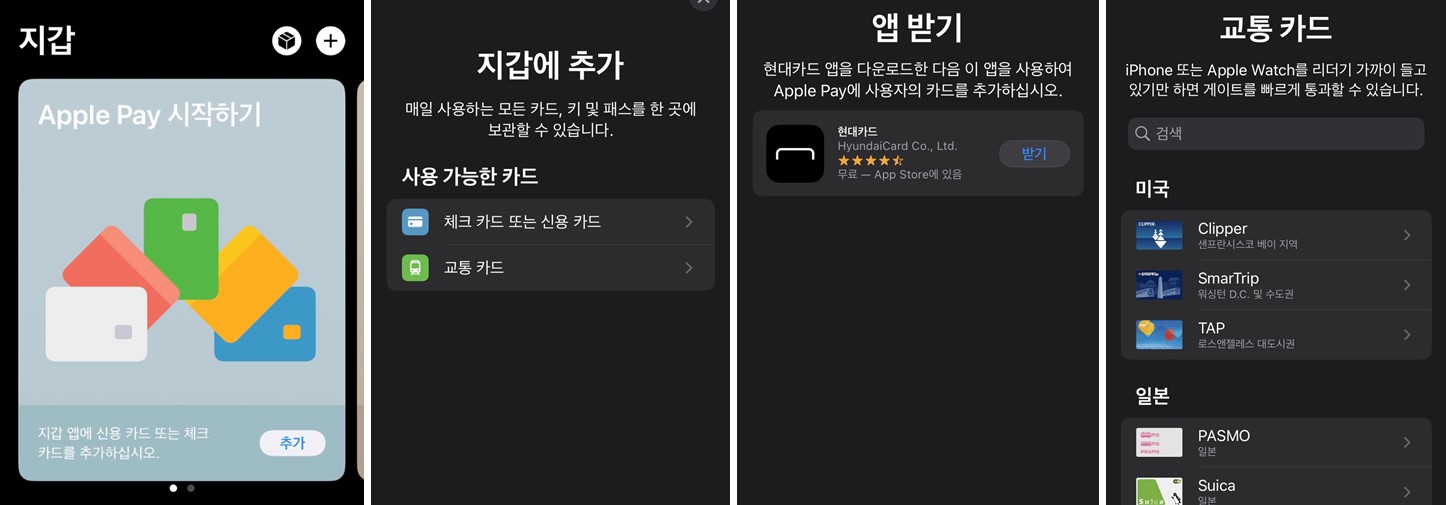 - 교통카드는 현재 애플과 계약이 되지않아 사용 불가능합니다.