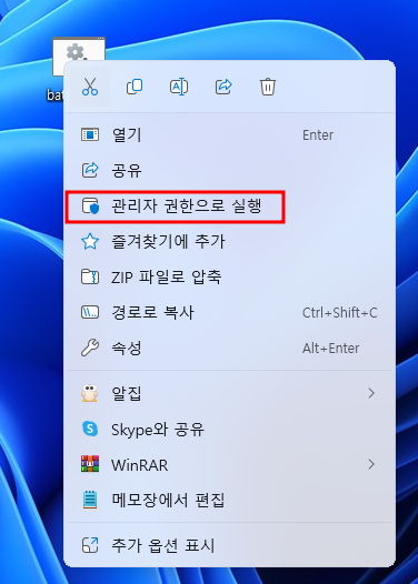 batch.cmd파일을 다운로드하신 다음 우클릭하고 관리자 권한으로 실행을 클릭해 주세요.